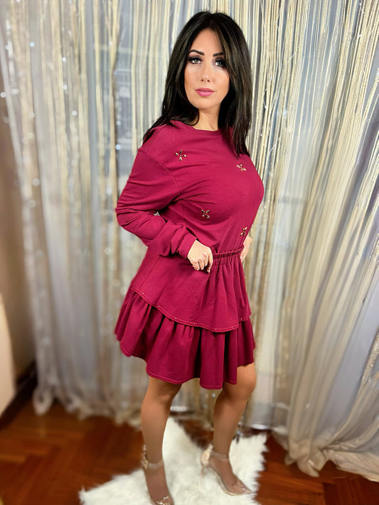 Completo Handmade Felpa + Gonna a balze - bordeaux