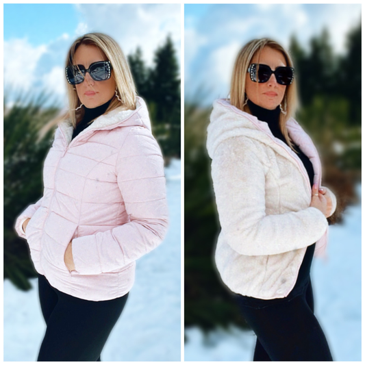 Piumino con pelliccia ecologica Double/Face - Rosa/Bianco