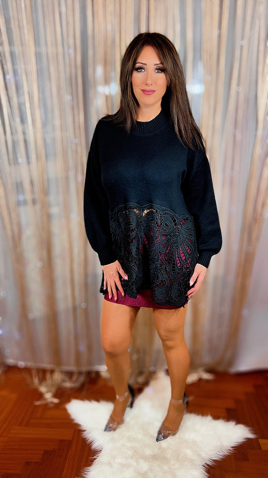 Pullover over strass con cappuccio in ecopelliccia – Nero