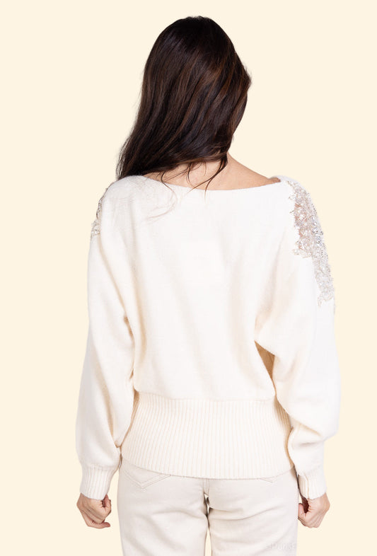 Cardigan in Morbida Ecopelliccia Bianca con Strass, Perle e bottoni gioiello – Bianco