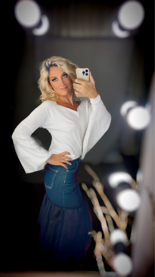 Minigonna jeans gonna velata denim stretch - Blu con tulle nero - Summer Edition Outlet