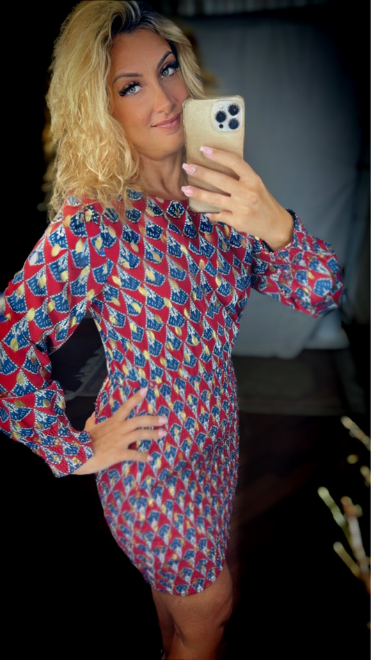 Abito elasticizzato-Rosso/Blu foglie oro - Summer Edition Outlet