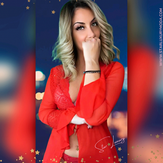 Vestaglia Handmade lunga in Satin con Pizzo e strass - Rosso