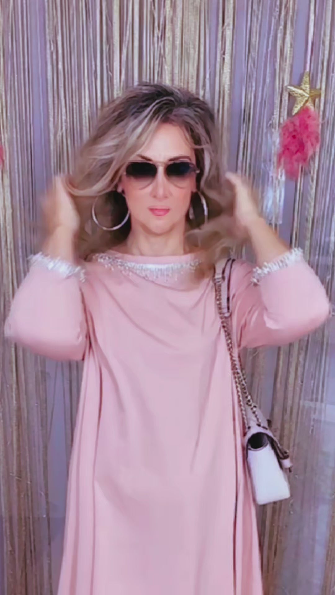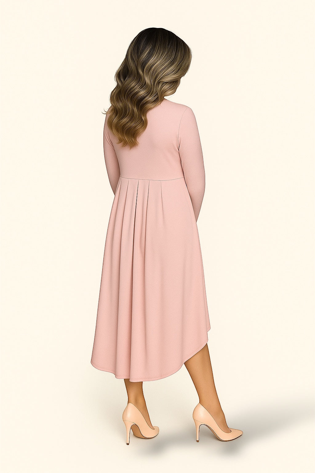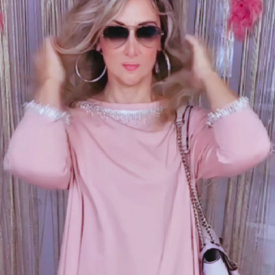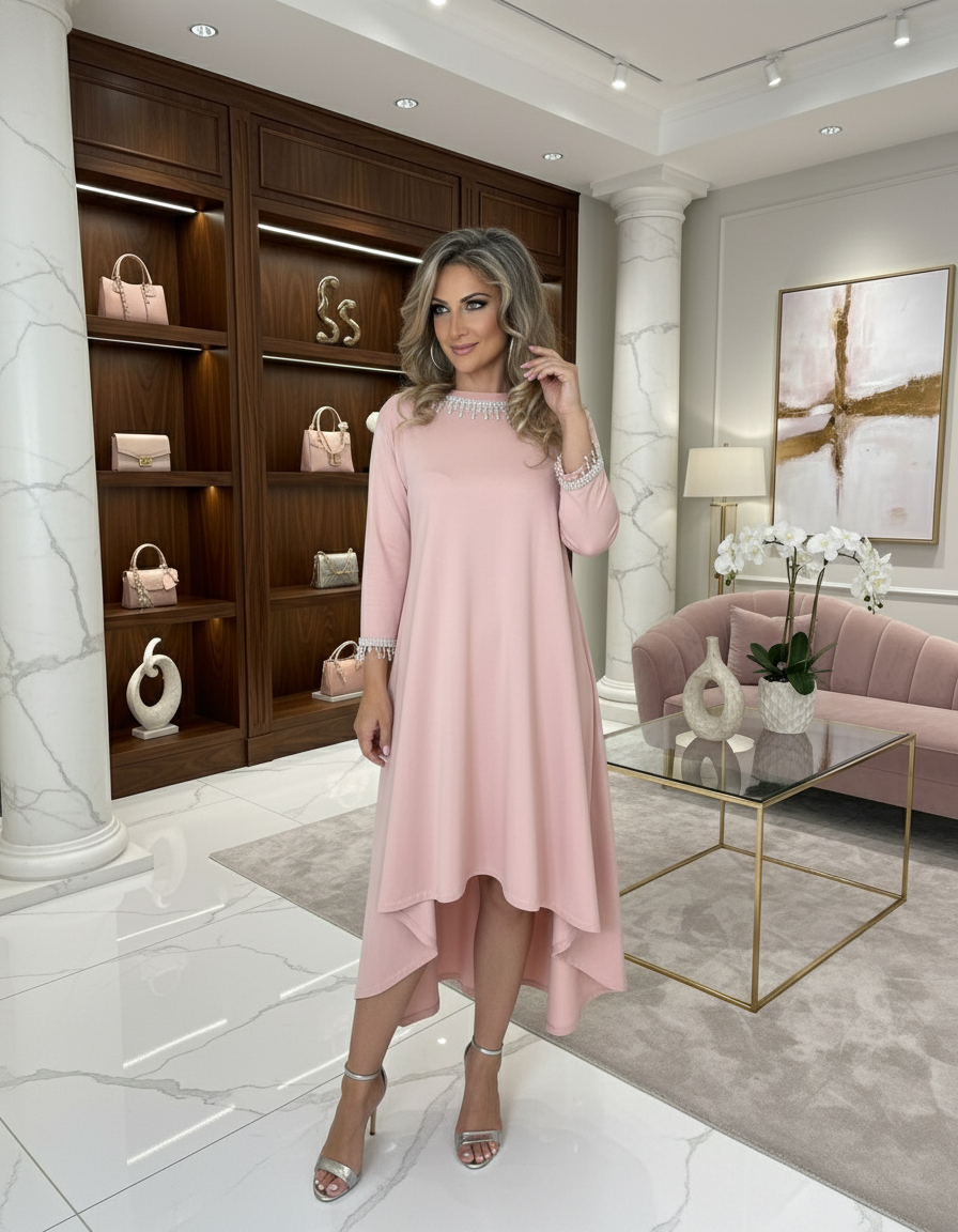 Abito Rosa Asimmetrico con Dettagli Gioiello Handmade - Pezzo Unico
